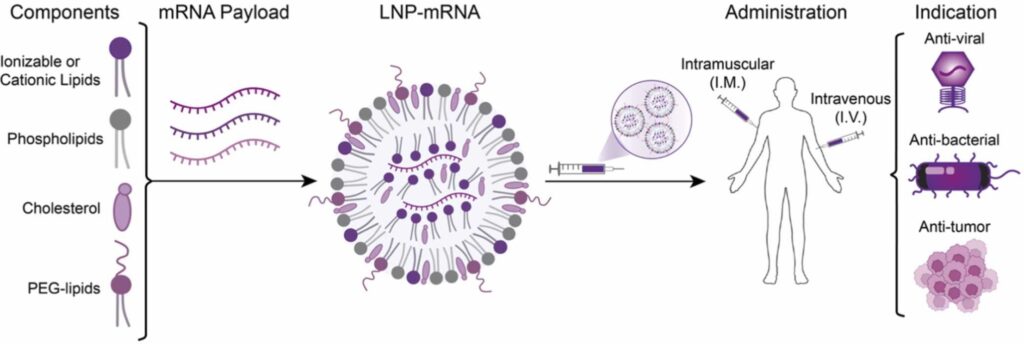 Hou, X., Zaks, T.*, Langer, R.*, Dong, Y.*, Lipid nanoparticles for mRNA delivery, Nature Reviews Materials, 1-17 (2021). PMCID: PMC8353930